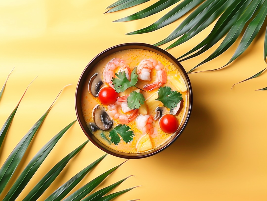 咖喱叶南姜柠檬草在椰浆里熬成金黄疑团,鸡肉吸饱浓汁变身香料载体!咬下去像翻开潘多拉魔盒——酸辣甜咸在舌面轮流轰炸!