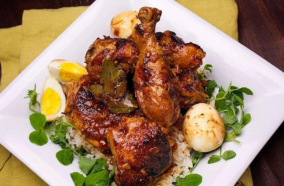 黑酱醋卤汁里沉浮的鸡块,早已被酸香渗透骨髓!皮肉别离的瞬间,醋香混着椰糖甜直冲天灵盖——菲律宾祖传酸功,专治食欲不振!