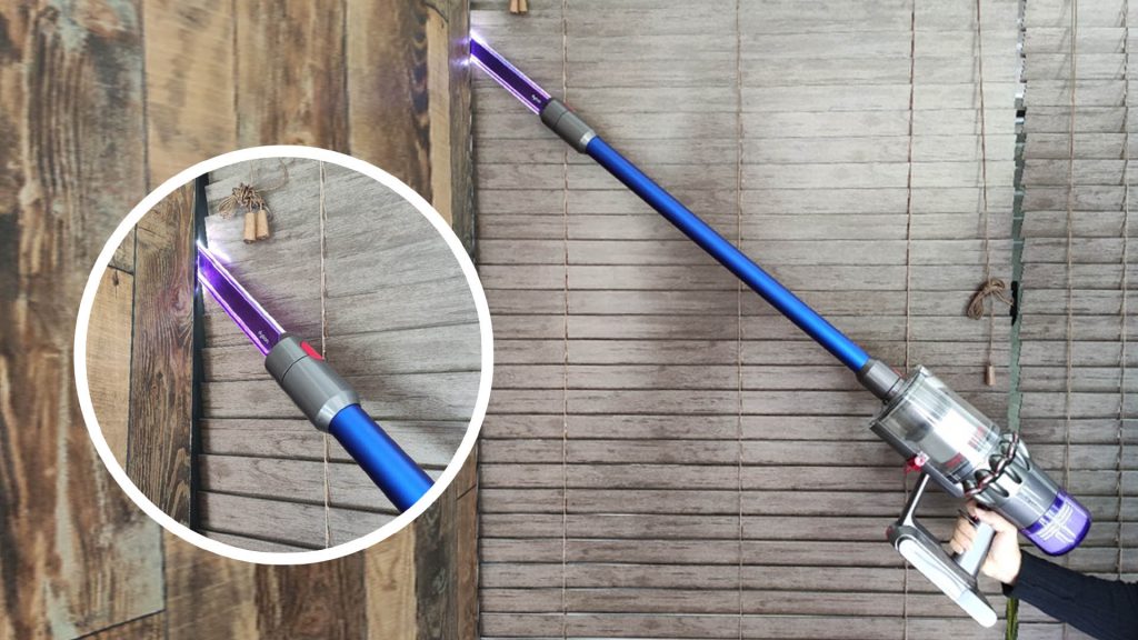 前文说到的“窄缝照明吸头”,正是因为能够发光的特点,让它有了新的拓宽运用功用。在实践领会中,笔者将其衔接上除尘杆后,点亮墙角顶部区域的一起 ,更能够精准的将旮旯中淤积的尘土和肉眼不易察觉的蛛网一扫而空。