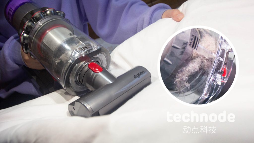 在实践领会戴森V11 Absolute Extra的除螨功用过程中,处于“微弱”档位状态下,一张长度为2m、宽度为1.8m的双人床、只需要约10分钟左右即可完结整套床上用品的清洁作业。不论是布艺的靠垫仍是蚕绒的被褥,运用完V11 Absolute Extra后,本来空荡的集尘盒中,都堆积了厚厚一层的灰白色碎絮状的尘土物。